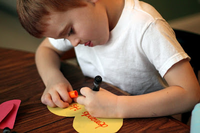 Chris (and Lydia) complete one or two copywork "assignments" each week, usually their Awana verse(s). This week Chris gladly (meaning he ASKED) wrote a letter to some friends on the back of his Valentine... yay, for "fun" copywork;)